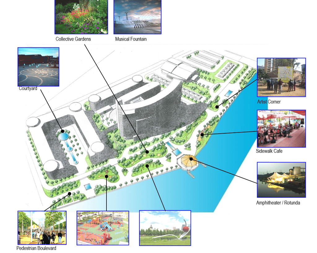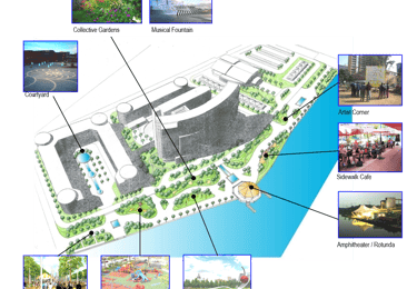 The relationship of buildings, landscape, water elements and the cultural context are the essence of the design principles for this waterfront proposal. Ecologically, the landscape can be represented as the green lung for the project.