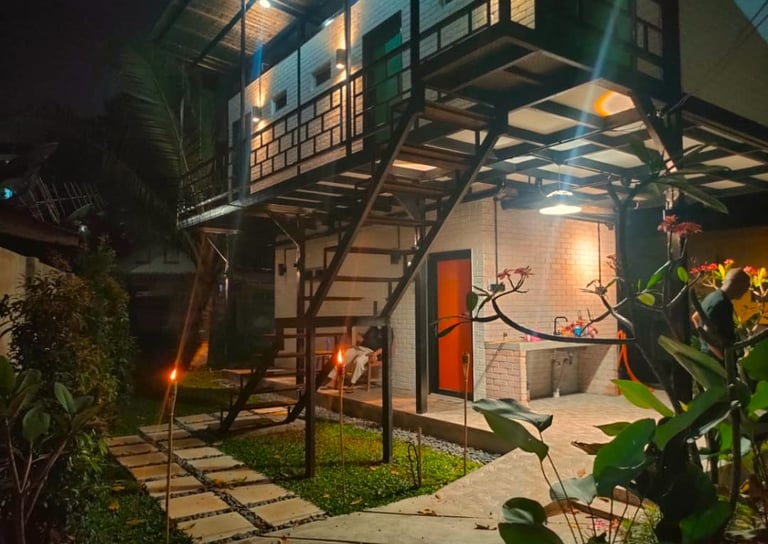 This concept of integrated living spaces combines AirBnb, cafe and lush tropical gardens.